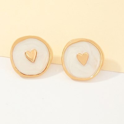 - ピアス ゴールド ハート ホワイト 漆器 韓国 光沢 レディース ジュエリー ファッション 合金 ドロップ オイル 愛 ラウンド 女の子 #C94-7