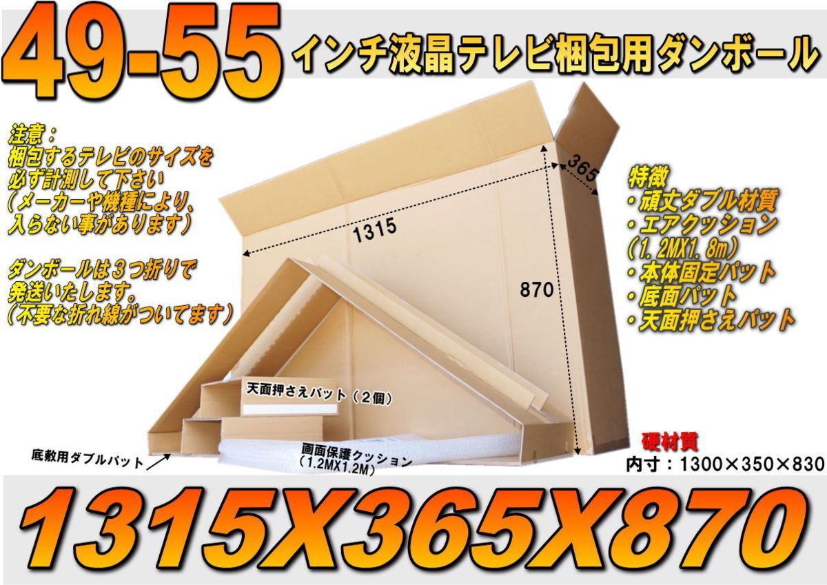 - ■49-55インチ薄型テレビ梱包用ダブル硬材質ダンボール (外寸:1315X365X870)※三つ折りで発送