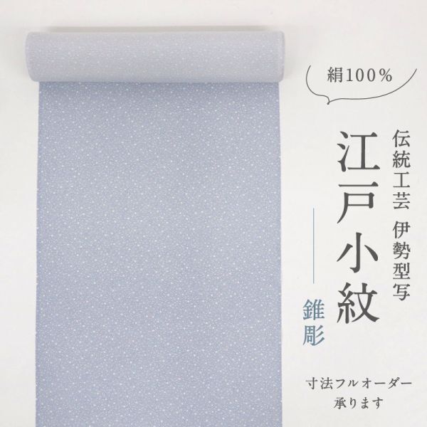 > 【反物】 絽 『伊勢型 江戸小紋』 大小あられ 藤色 正絹着物 夏着物 お仕立て可 反24-14