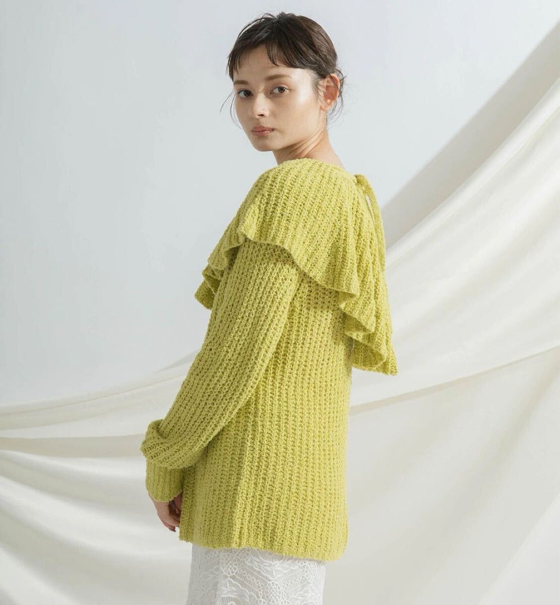 グレースコンチネンタル ルーズフレアニットトップ 2万6400円 新品 スタイリスト私物 オーバーサイズのルーズ編みにフリルが溶け込んだ、大人のフェミニンな着こなしにぴったりなニットです
