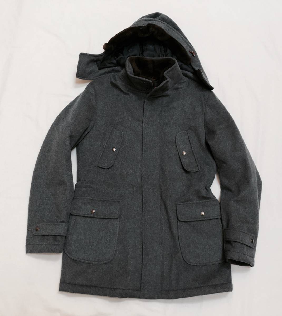 > 未使用☆80万☆48サイズ M〜L【 ISAIA イザイア 】極暖素材!最高ランク カシミア【アクアカシミア100%】 フード脱着式 システムブルゾン