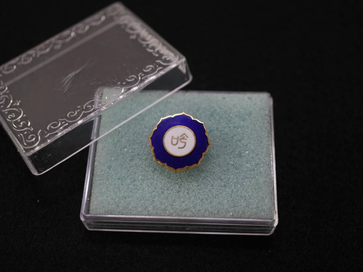 - 即決あり 昭和レトロ 日本詩吟学院 会員章 ケース入り ピンバッチ バッジ 記章 校章 学校 七宝焼き 八咫鏡柄 社章 家紋 メダル
