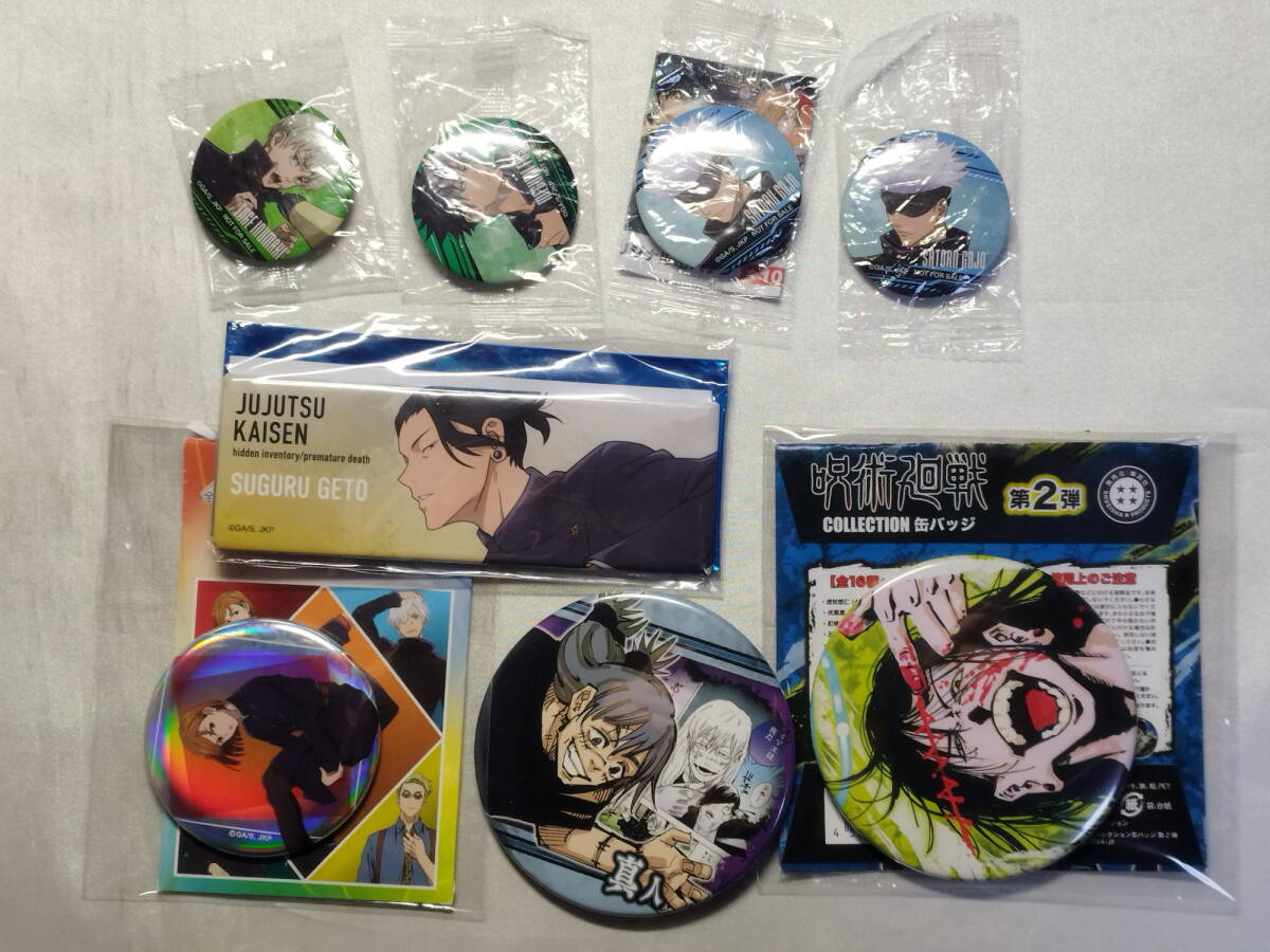 - 中古品 呪術廻戦 夏油傑/真人/釘崎野薔薇/五条悟等 缶バッジ 8個セット