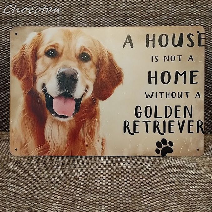 - 【送料無料】ゴールデンレトリバー ⑫ HOME メタル看板 サインプレート 【新品】