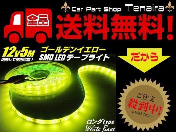 > 12V LED テープライト 5M ゴールデン イエロー サイド 黄 レモン マーカー 照明 トラック デコトラ アンドン 切断可能 メール便送料無料/6