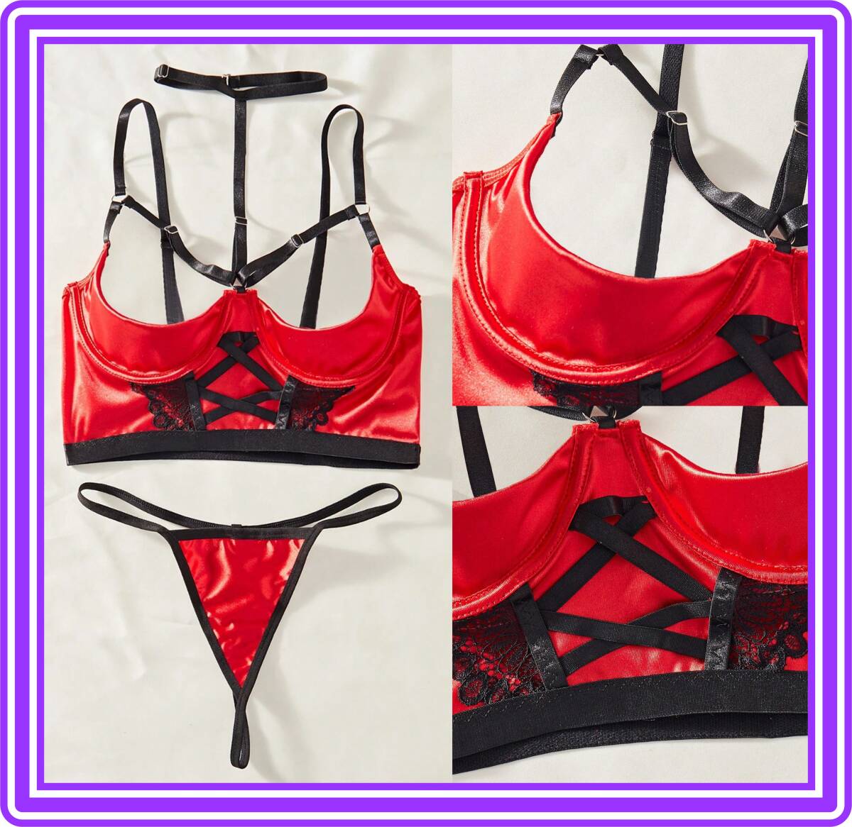 - ★超素敵★ハーフカップ風デザイン★サテン★光沢★アンダーワイヤー式★ランジェリーセット★バスト部デザイン超素敵★H193