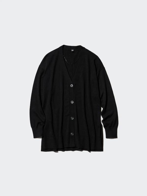 - ユニクロ UVカット Vネックロングカーディガン Lサイズ ブラック