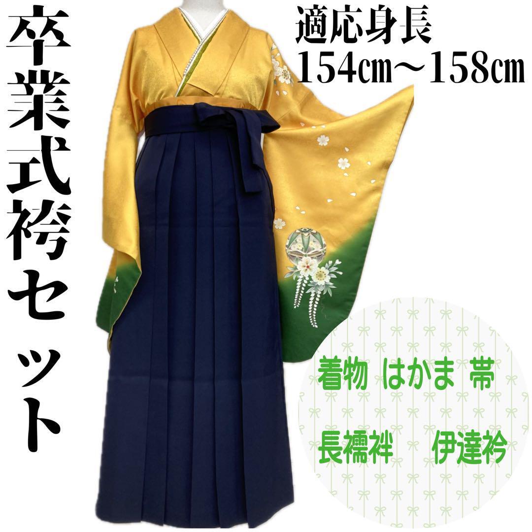 - 【着物と帯 時流】L25132◆卒業式袴 5点セット◆お買い得セット黄色 紺色