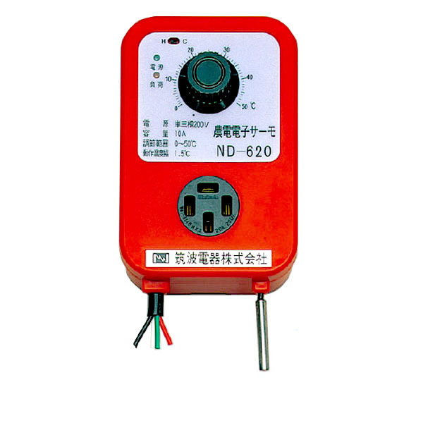 > 農電 電子サーモ ND-620 単相・三相200V・10A (農電サーモ ヒーター 換気扇 サーモスタット 温度センサー 温室 日本ノーデン)