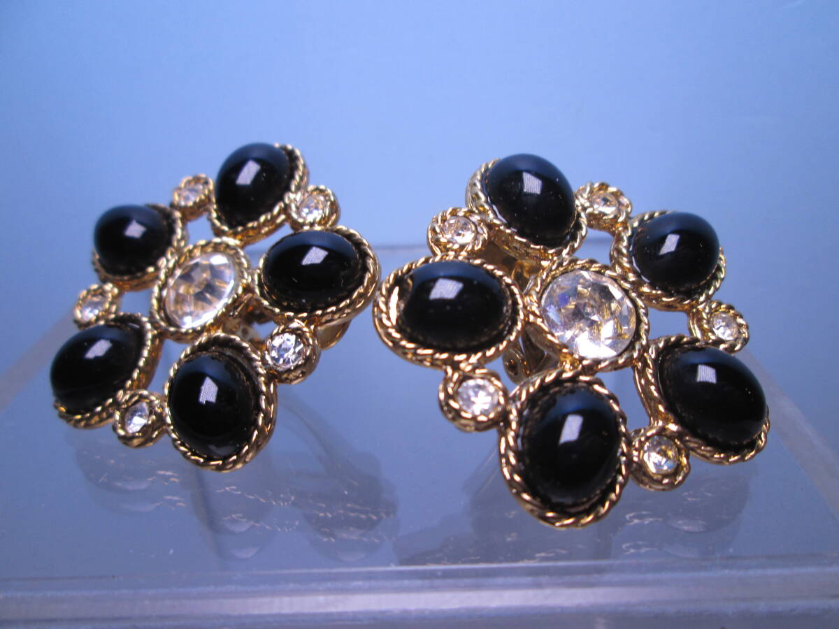 - ☆ ブラック/ラインストーン デザインイヤリング コスチュームジュエリー