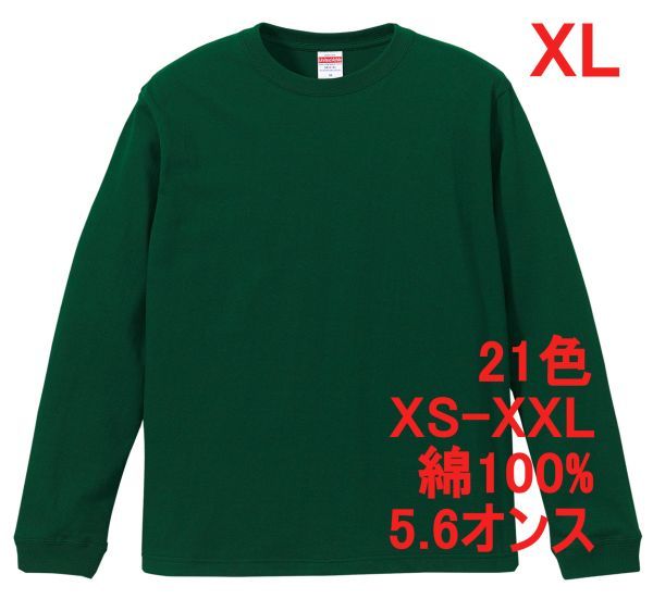 - 長袖 Tシャツ XL アイビー グリーン 袖リブ 綿100 5.6オンス 無地 無地T 長袖 Tシャツ ロンT A513 LL 2L 緑 緑色 501101 5011 5011-01