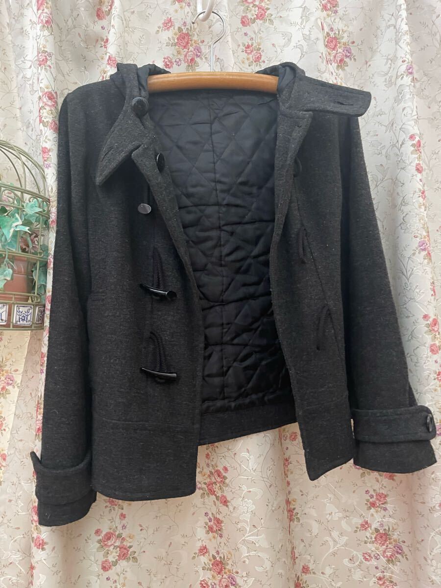 > ダークグレー グレー ショートコート ダッフル 中綿 キルティング パーカー L 11号