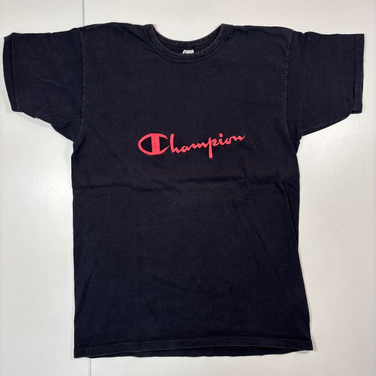 - 【L】80s Vintage Champion Logo Tshirt Black 80年代 ビンテージ チャンピオン 刺繍ロゴ 半袖 Tシャツ ブラック 黒 トリコタグ USA製 T939