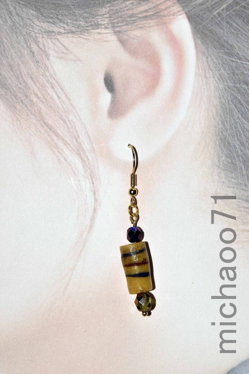 - ◆ピアス 素朴なアフリカン再生ヴィンテージビーズ 片耳1個(12003-463 )アフリカのビーズメイン玉