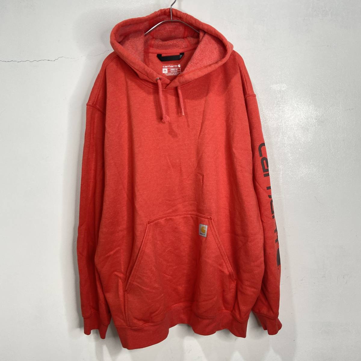 - 送料無料☆carhartt☆カーハート☆スウェットパーカー☆フーディ☆スリーブロゴ☆ビッグサイズ☆裏起毛☆レッド系☆2XL☆I23
