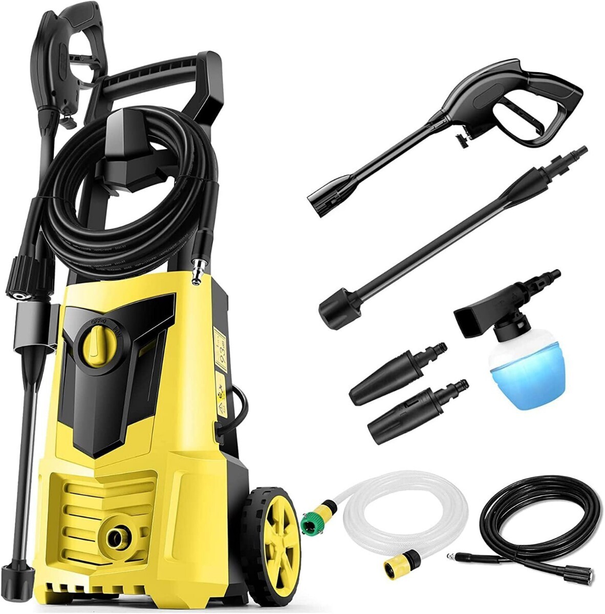 - 高圧洗浄機 1500W 最大吐出圧力13MPa 50Hz/60Hz東西日本兼用 水道直結・自吸両用 家庭用高圧クリーナー 高圧ホース10m+水道ホース3m