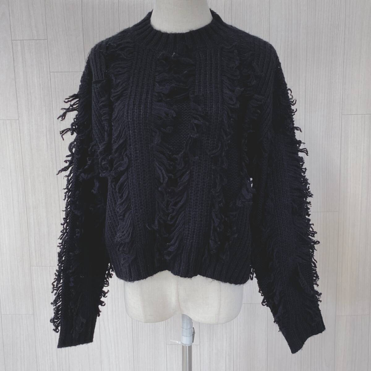 - YX230 美品 OLIVE des OLIVE オリーブデオリーブ レディース トップス セーター 長袖 フリンジ 伸縮性 厚手 F 黒無地あたたかおしゃれ 秋冬