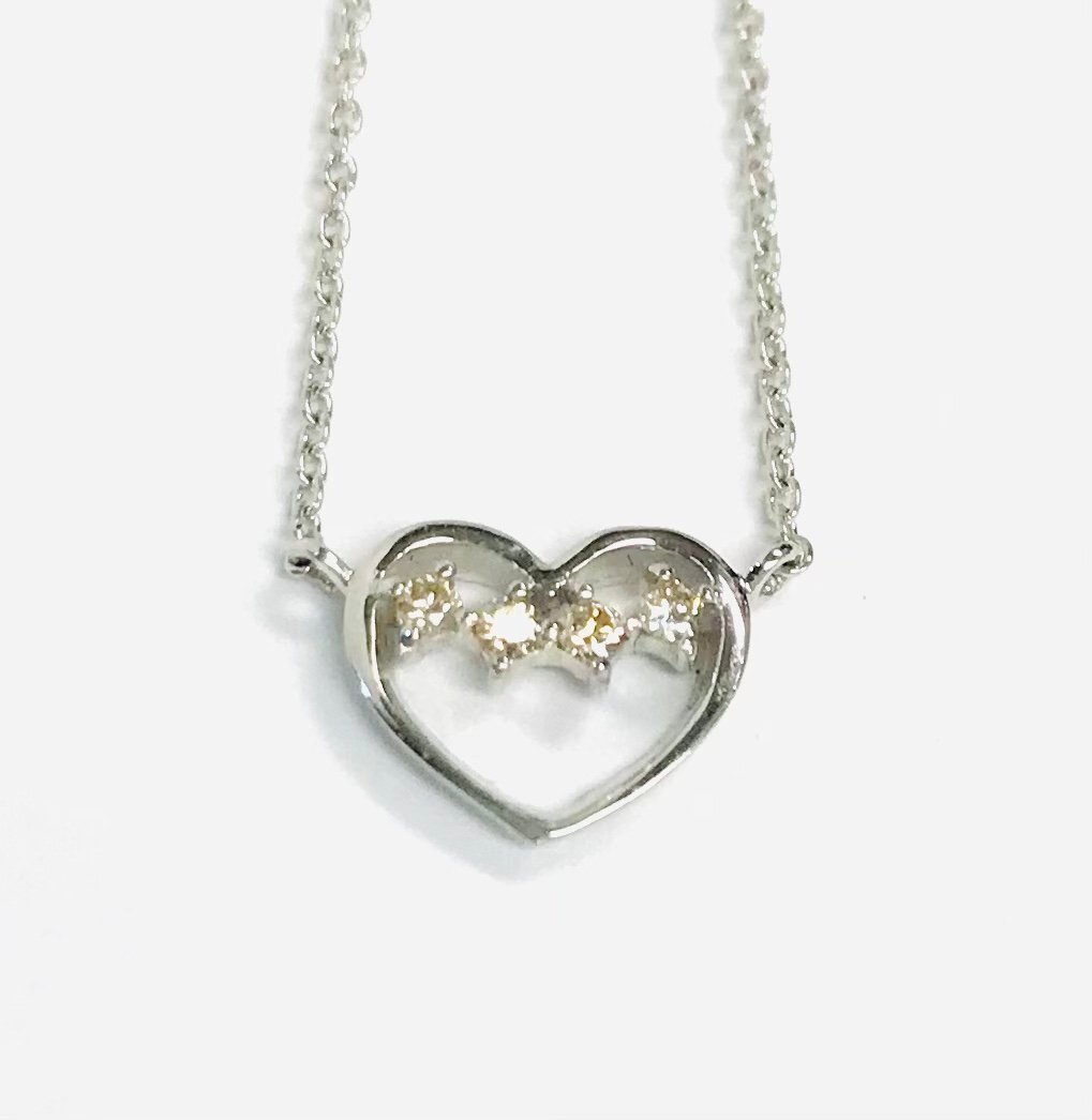 > qoj.Z6Q05 K10WG/SILVER925 ハートデザイン 4連ダイヤモンドネックレス 4PD0.05ct ケース 箱付き