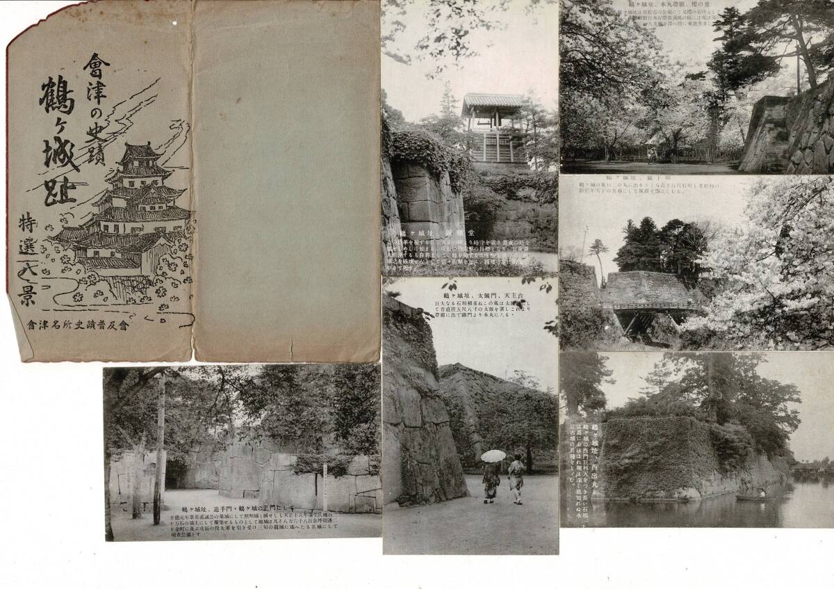 - *「会津の史蹟 鶴ケ城趾」レトロ絵葉書7枚とタトウ 1枚は劣化により剥落あり 追手門 月見櫓 鐘楼堂 西出丸 太鼓門 廊下橋 RPM04125MU9