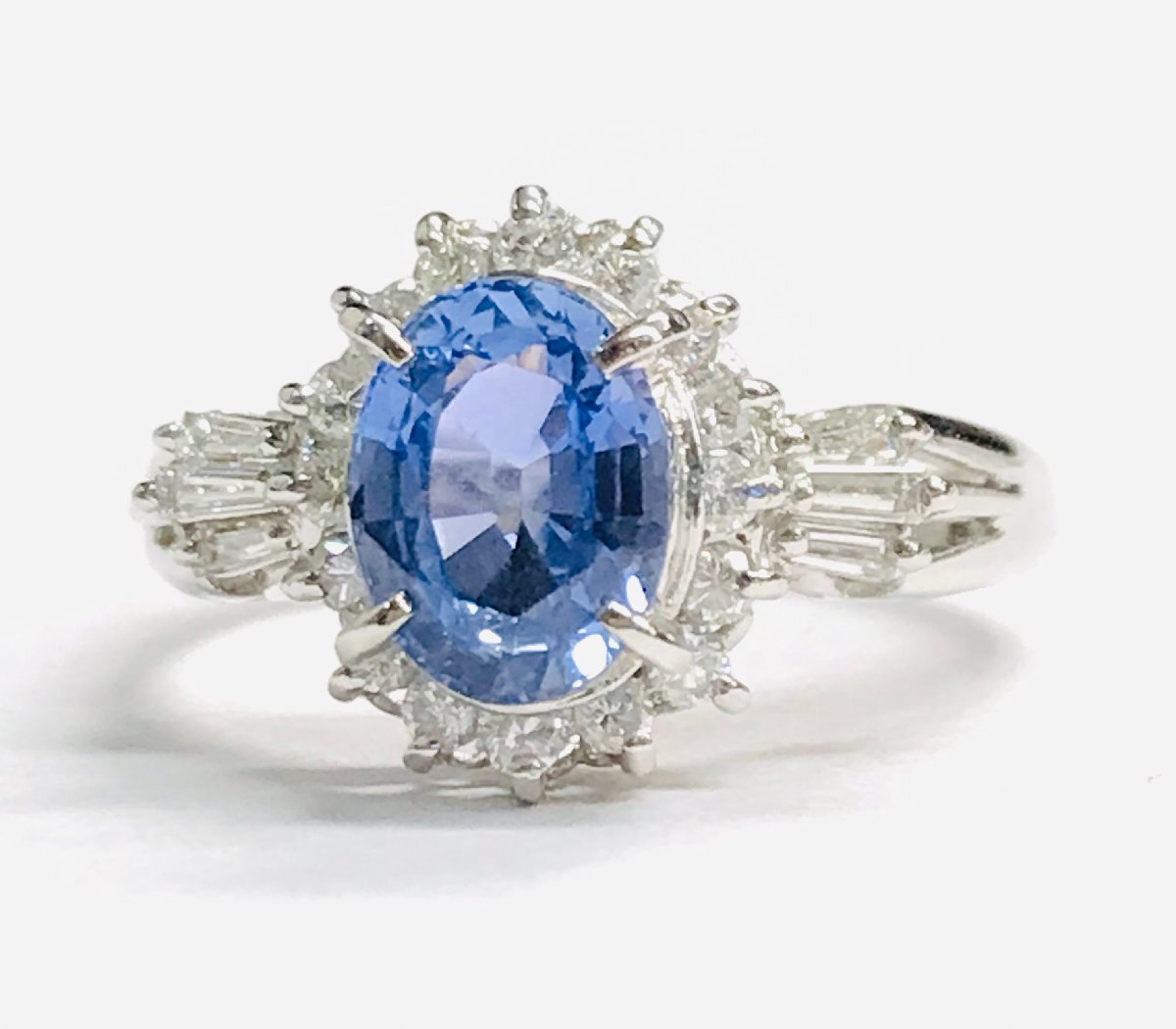 > qoj.Z8W02 PT850 天然ブルーサファイヤ×ダイヤモンドリング 中石1.61ct/枠石0.33ct ソーティング付き 11号
