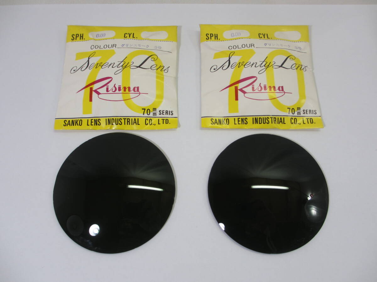 > W93◇70mm◇1960/1970年代のデッドストック ヴィンテージ サングラス ガラスレンズ 2枚 度無し◇sankoレンズ◇緑 グリーンスモーク◇