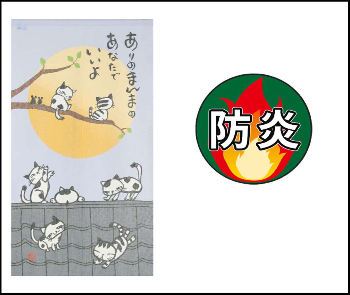 - 和風 防炎のれん82×150cm ありのまんまのあなたでいいよnaru-9110グレー防炎ネコ 猫 ねこ 満月 和柄 暖簾 ノレン