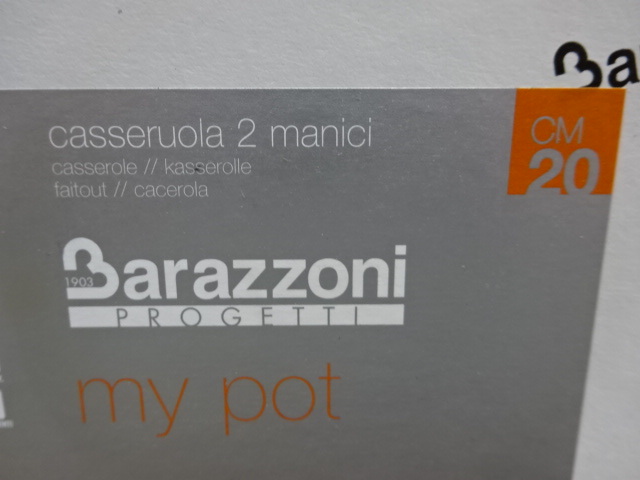 - 【新品未使用品】Barazzoni|バラゾーニ 耐熱ガラス蓋付 キャセロール(20cm) MY POT シルバー 160002020-GL [IH対応]