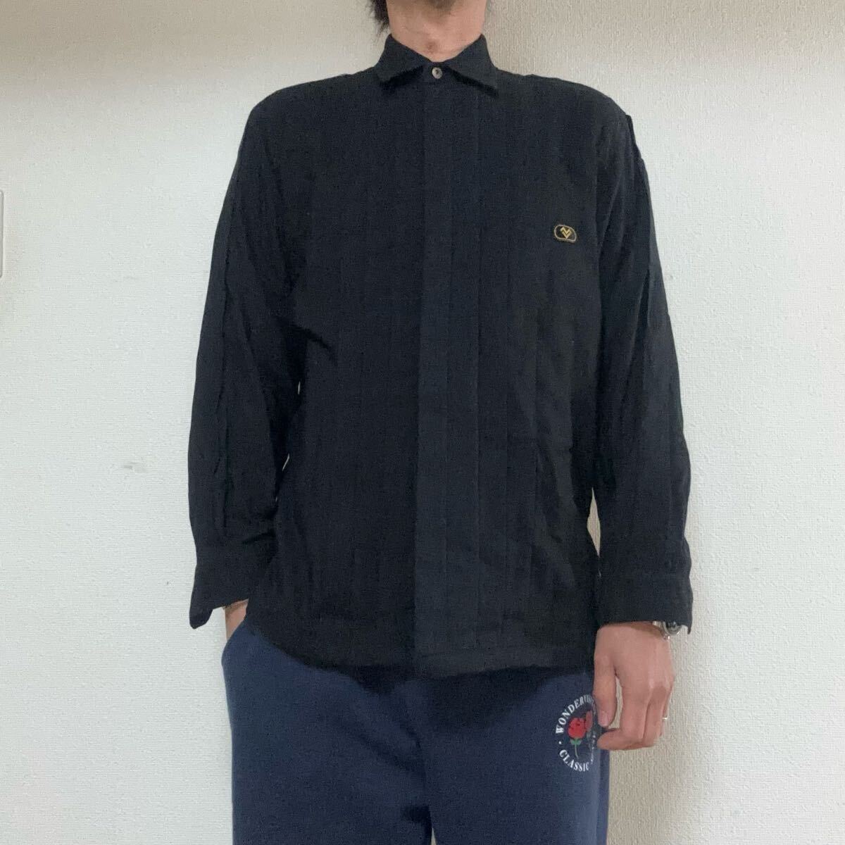 - MARIO VALENTINOマリオバレンティノ ブラック ウール タックシャツM