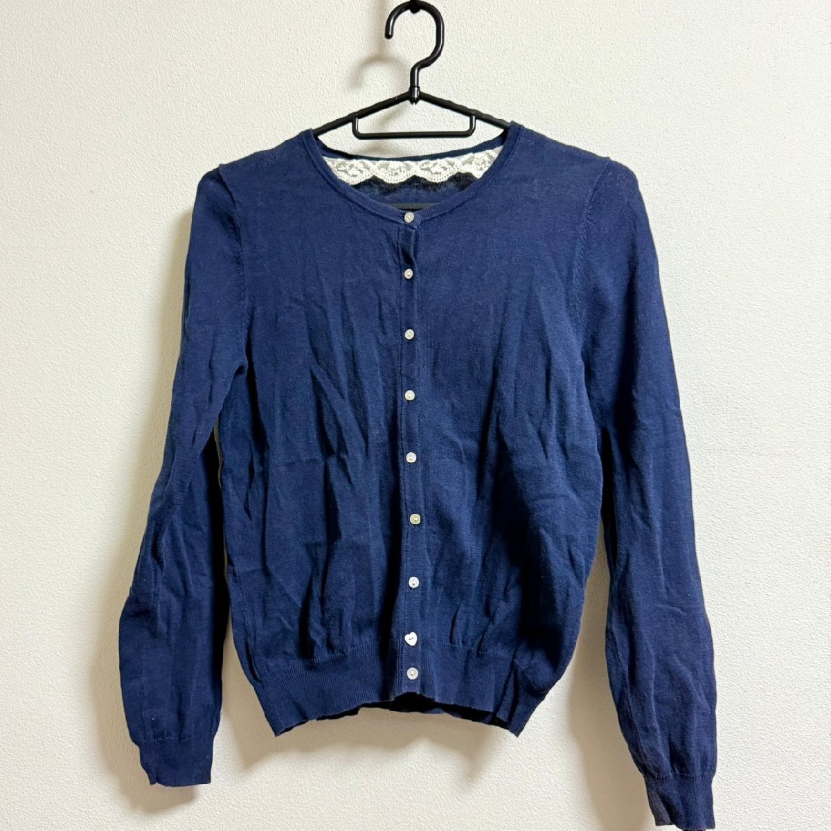 - earth music & ecology カーディガン 長袖 ニット ネイビー クルーネック ウィメンズ Sサイズ