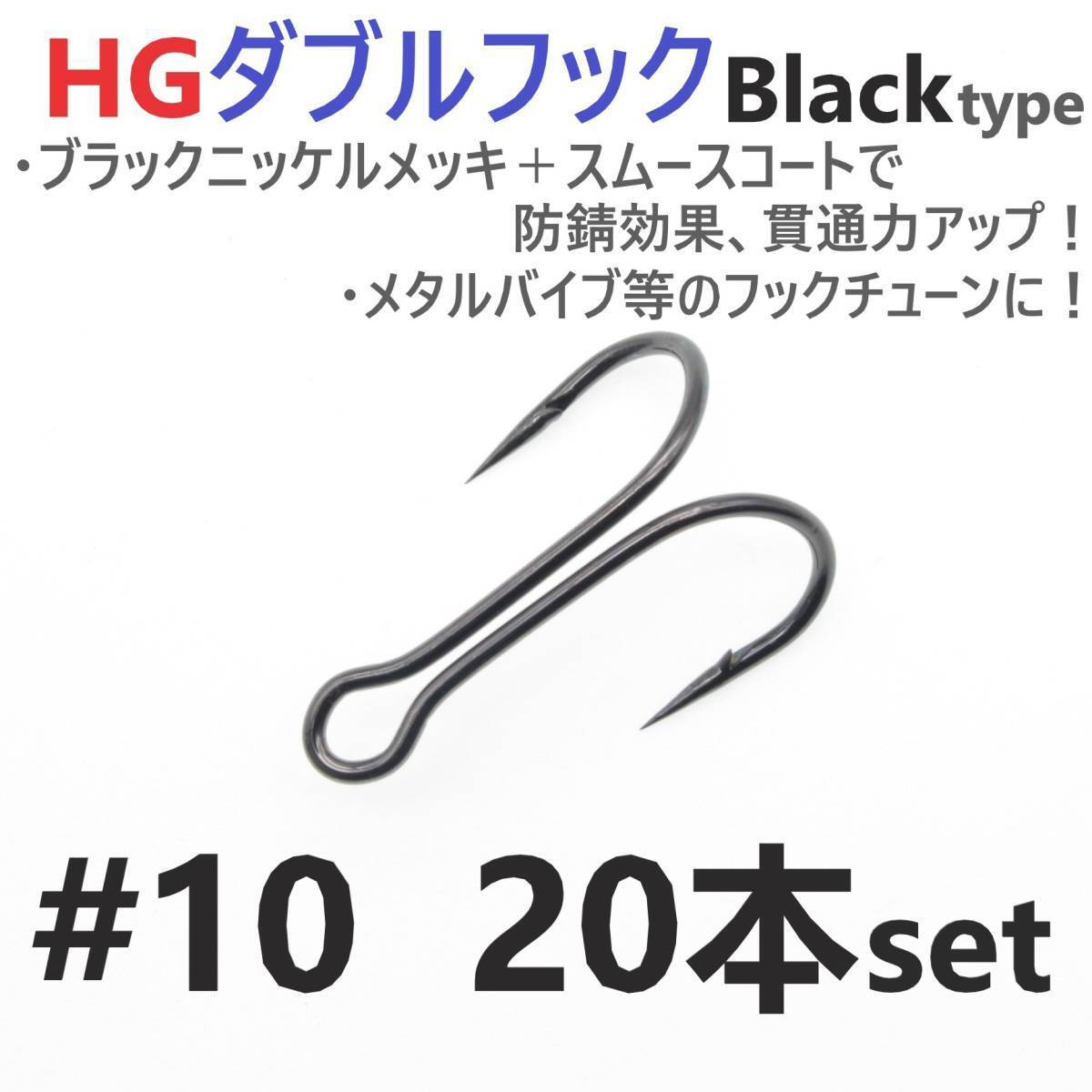 > 【送料150円】HGダブルフック ブラック #10 20本セット ハイグレードフック ソルト対応 メタルバイブ バイブレーション フックチューンに!