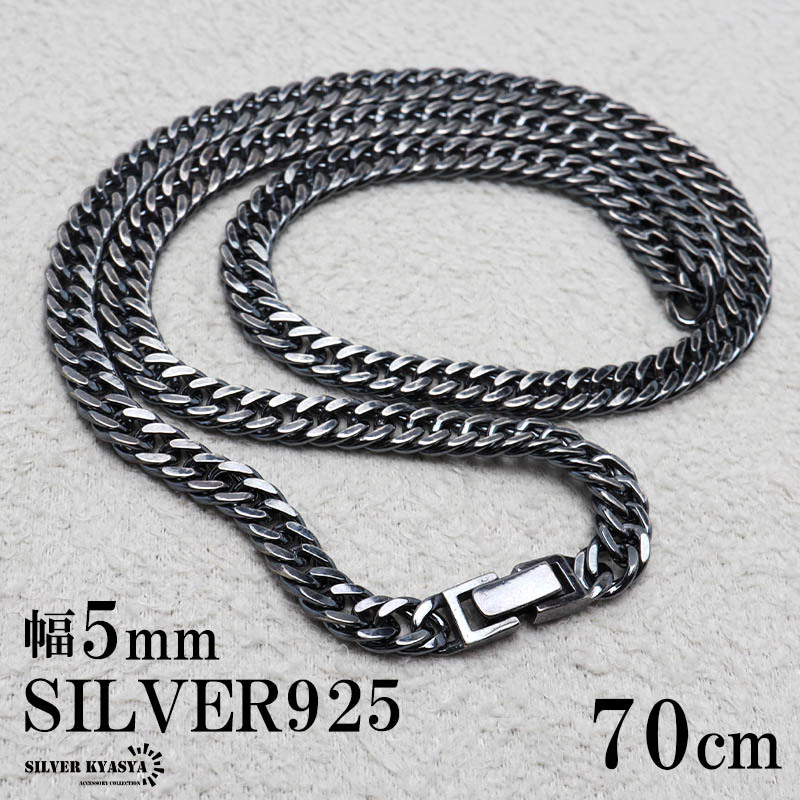 - シルバー925 ブラック ダブル喜平チェーン ネックレス 70cm 燻し加工 幅5mm 喜平ネックレス メンズ 金属アレルギー対応