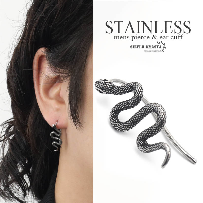 - ステンレス スネーク イヤリング メンズ ピアス ヘビ 蛇 ピアス イヤリング 金属アレルギー対応 片耳用1点 18G