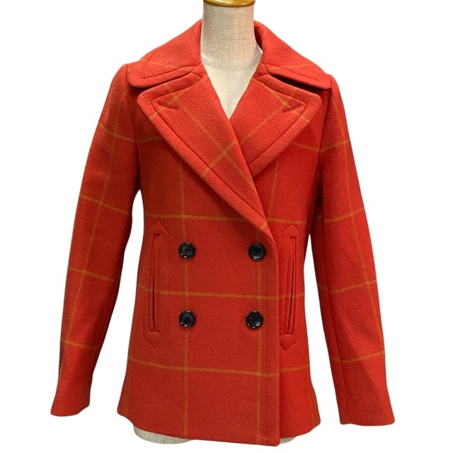 - COACH コーチ ピーコート アウター 上着 ジャケット ミドル丈 チェック柄 ウール ナイロン オレンジ [表記サイズ XS]