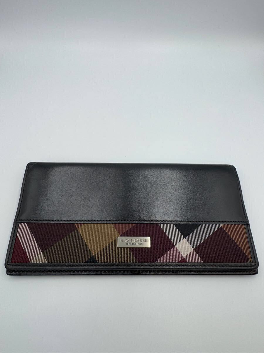 > 美品 ブラックレーベル クレストブリッジ 長財布 ブラック レザー チェック 小銭入れ付き メンズ 二つ折り財布 カードケース バーバリー