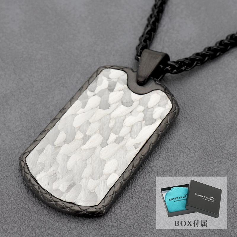 - 存在感 無骨 ドッグタグネックレス 槌目 シルバー メンズネックレス プレートネックレス ブラック チェーン付き 専用BOX付属