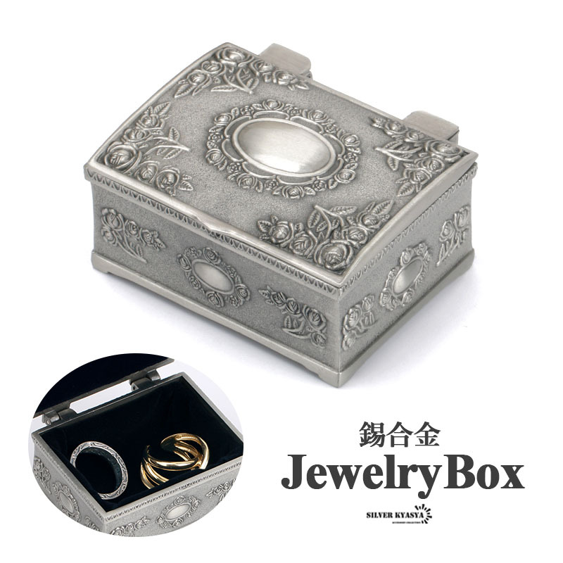 - アンティーク調ボックスケース バラ 錫 収納 アンティークシルバー 銀 アクセサリー収納