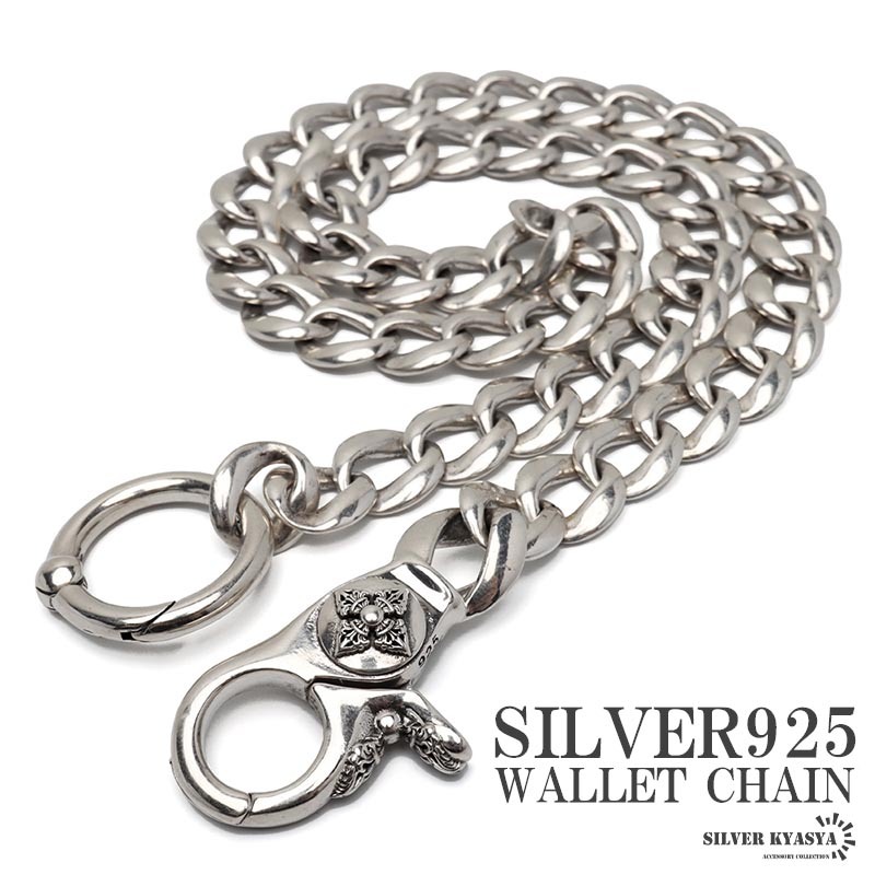 - シルバー925 極太 ウォレットチェーン 喜平チェーン クロス 幅12mm 太幅 ごつめ フック メンズ 重厚 財布 鎖