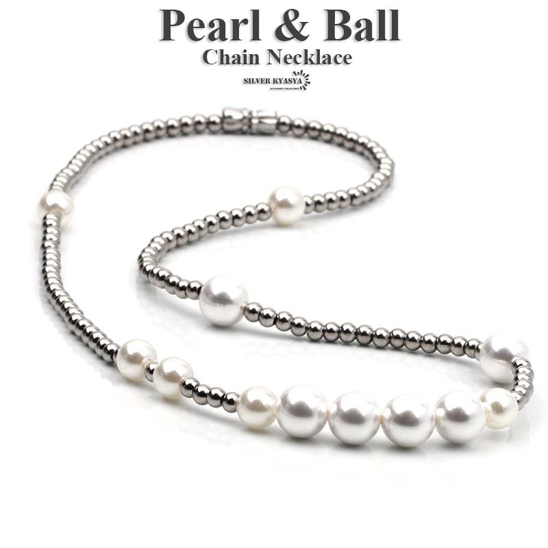- パールネックレス メンズ ボールチェーン ダブルチェーン ストリート メンズパール ビーズ 一連 ネックレス
