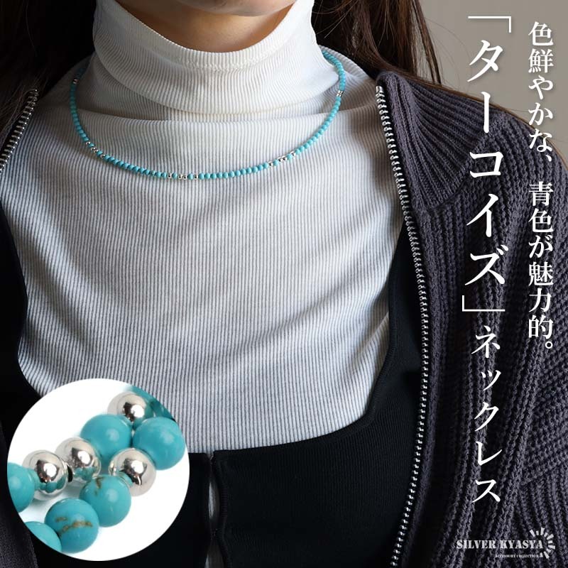 > シルバー925素材 ターコイズネックレス ストーンネックレス パワーストーン ビーズ チェーンネックレス ブルー 金アレ対応