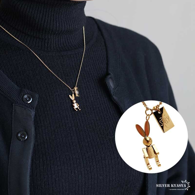 - ステンレス うさぎネックレス 可動式 ゴールド 18KGP ラビットネックレス ベネチアンチェーン 金属アレルギー対応