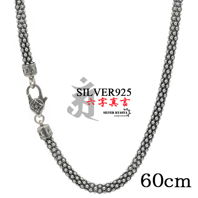 - 60cm 六字真言 ネックレス メンズ シルバー925 チェーンネックレス 銀 金剛杵 刻印 ハート アルファベット 英文字