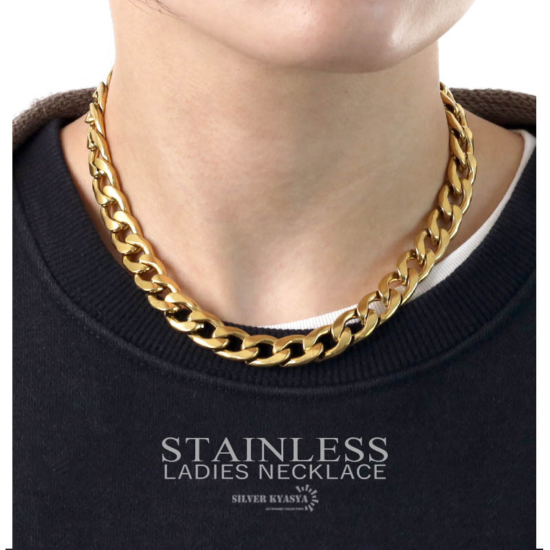 - チェーンネックレス ステンレス 18KGP ゴールド 喜平チェーン 喜平 ネックレス チョーカー 太幅 幅12mm 金属アレルギー