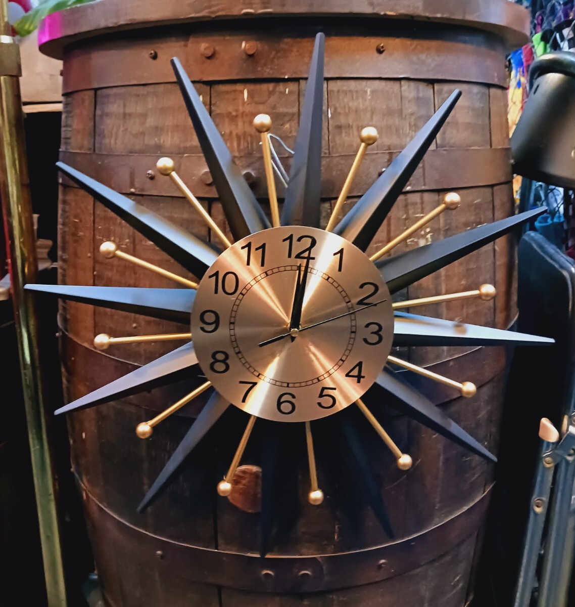 - アメリカン雑貨ロカビリーミッドセンチュリースタイルサンバーストクロック掛け時計