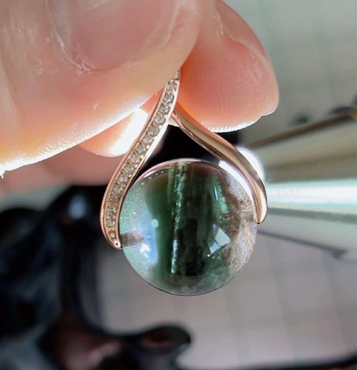 > R2M-046天然水晶 一品一図 一点物 ガデンクォーツ 健康 長寿 綺麗~ パワーストーン ペンダント14mm チェーンS92545cm