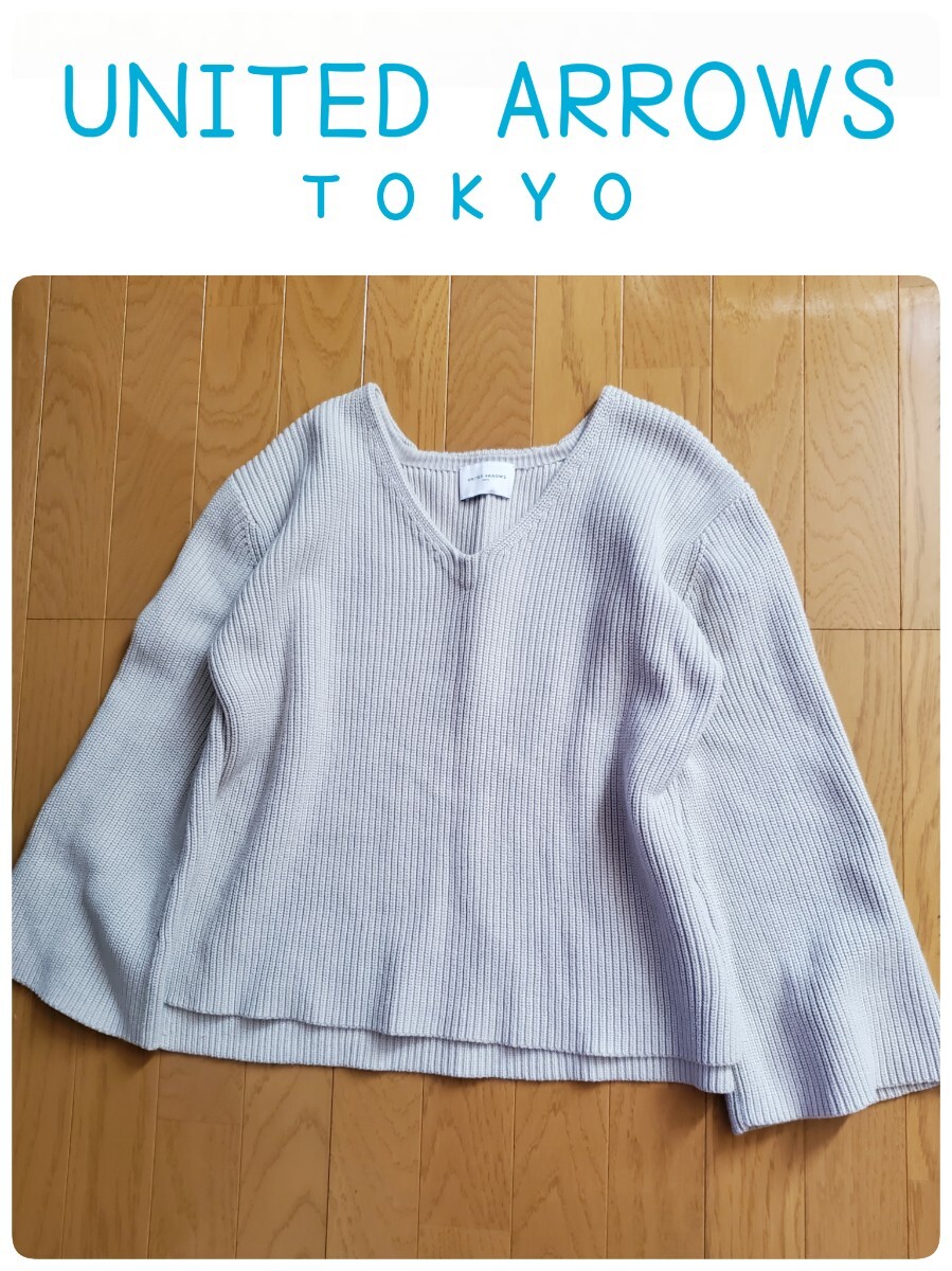 - 送料無料★UNITEDARROWS TOKYOベルスリーブVネックざっくりニットアイボリー