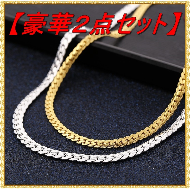 - 豪華2点 幅5mm 18KGP ゴールド 925SP シルバー 喜平 ネックレス