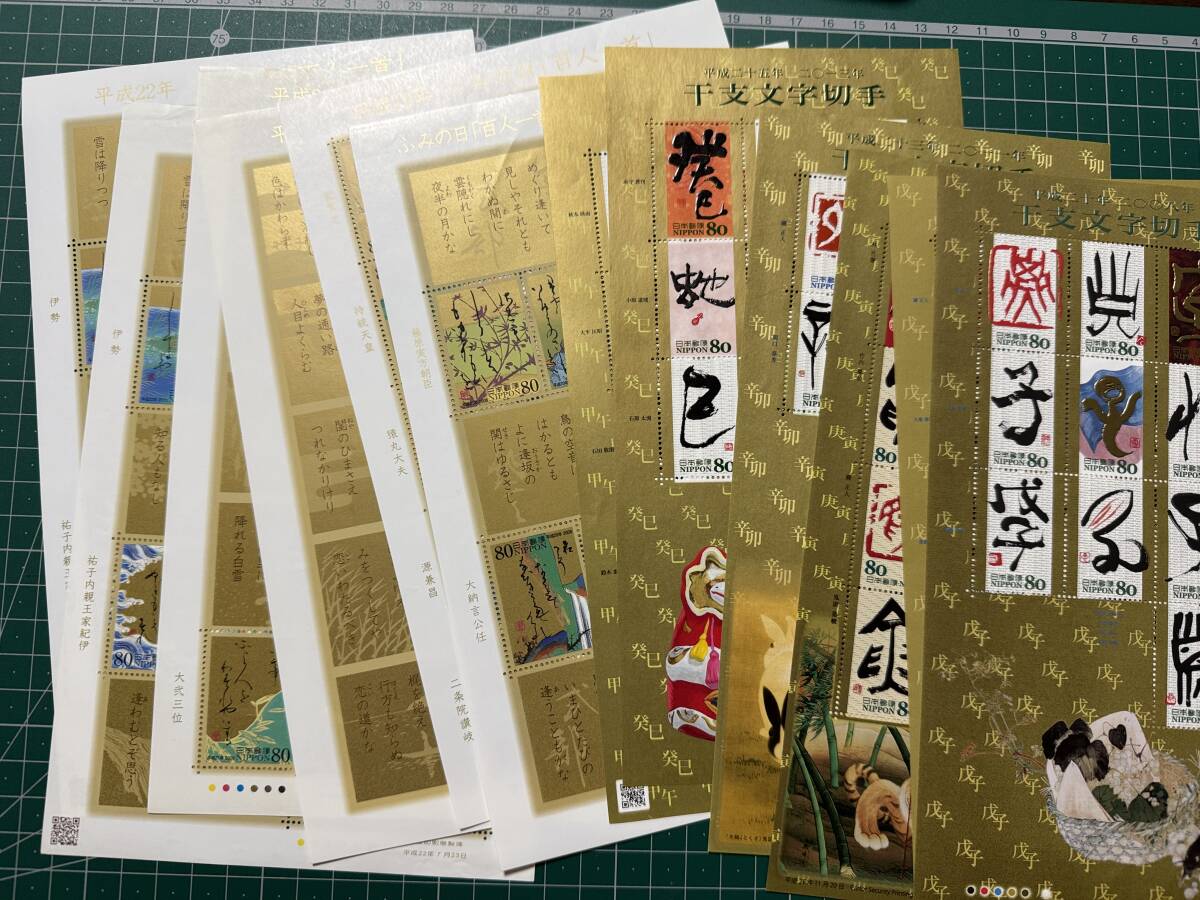 - 切手シート 干支文字切手6シート ふみの日 百人一首 6シート 800円×12シート