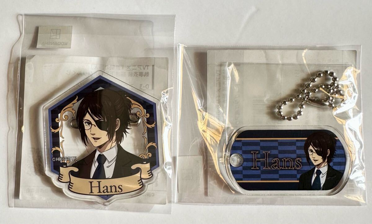 - ☆進撃の巨人※ハンジ※Eureka!※オンラインくじ※エウレカ※ドッグタグ風アクリルキーホルダー※アクリルバッジ※執事衣装※2点セット☆