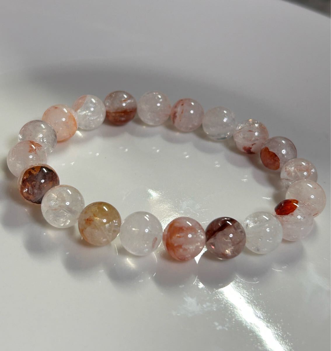 - 早い者勝ち!!天然石★全粒 虹入り!オーロラクォーツ ブレスレット★9mm後半 17cm