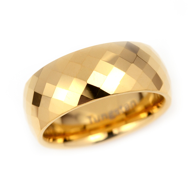 > ★インスタ映え★SNS★人気★お勧め★金属アレルギー&温泉&海水浴ご使用OK★イエローゴールドタングステンリング★甲丸ダイヤ柄カット